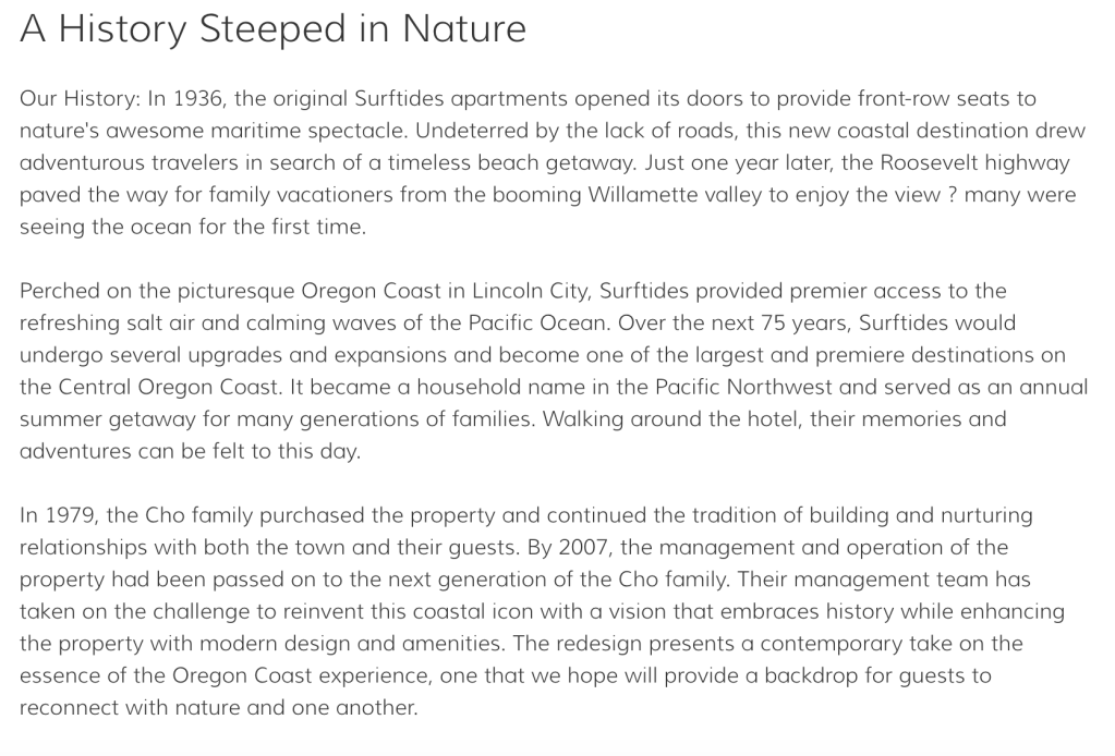 When a creative agency started to revamp the Surftides Lincoln City website and brand identity, I was brought in to write the content.